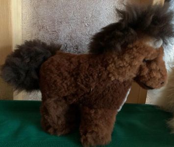 A fluffy friend that will bring charm to any room! This cute Peruvian handmade Lion, Teddy Bear and Horse ornament is soft and cuddly. A lovely gift made of 100% baby Alpaca and available in natural colors. No alpacas are harmed for this purpose. Size: 13 inches.